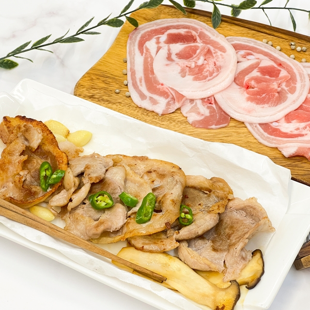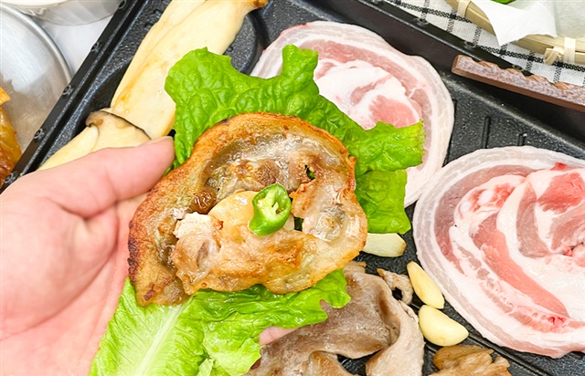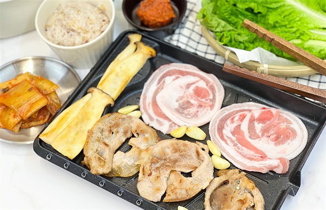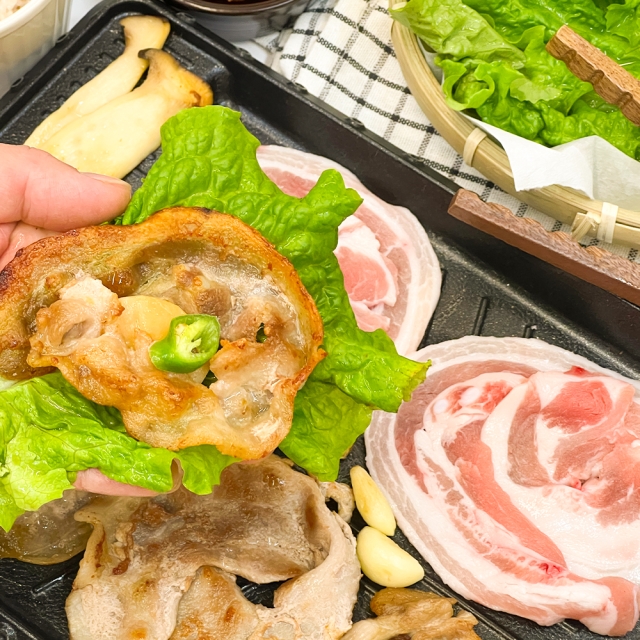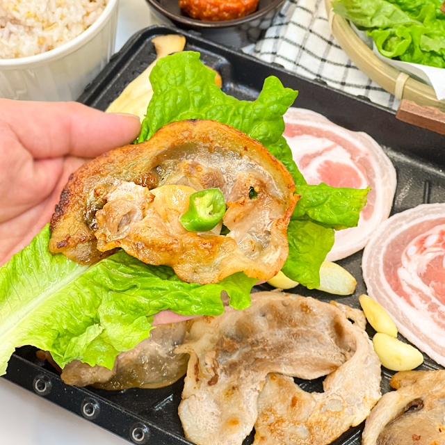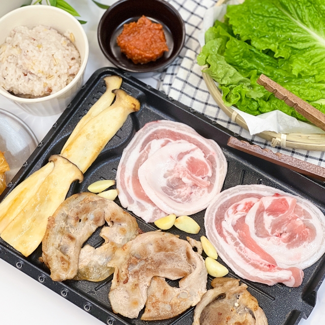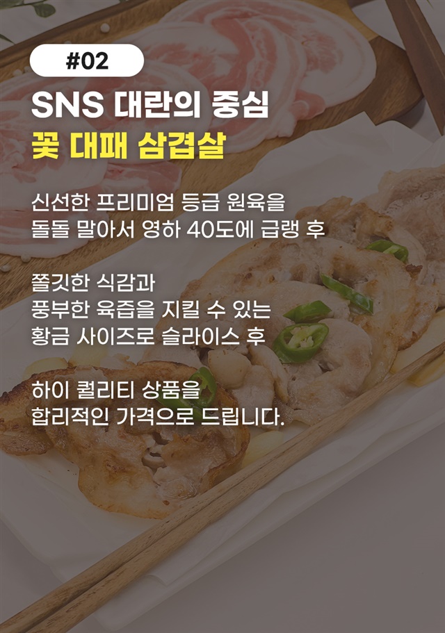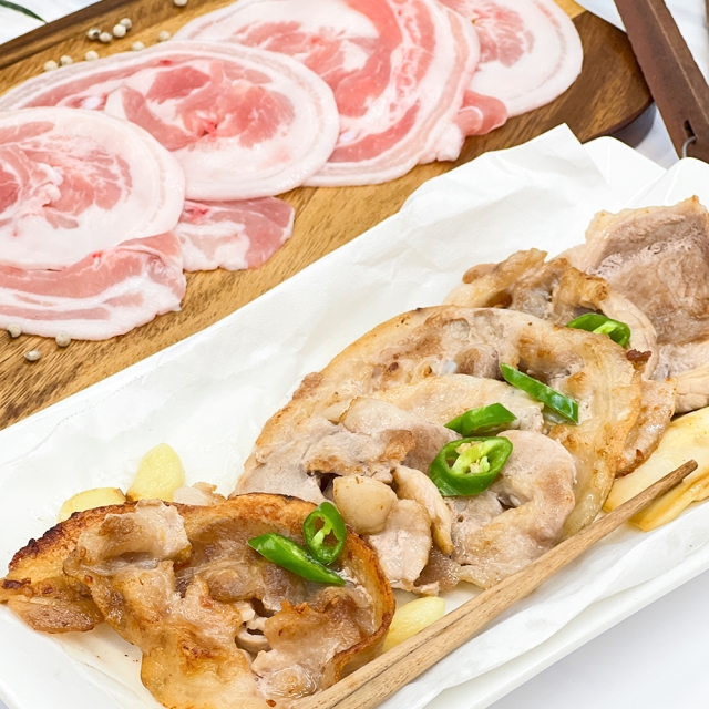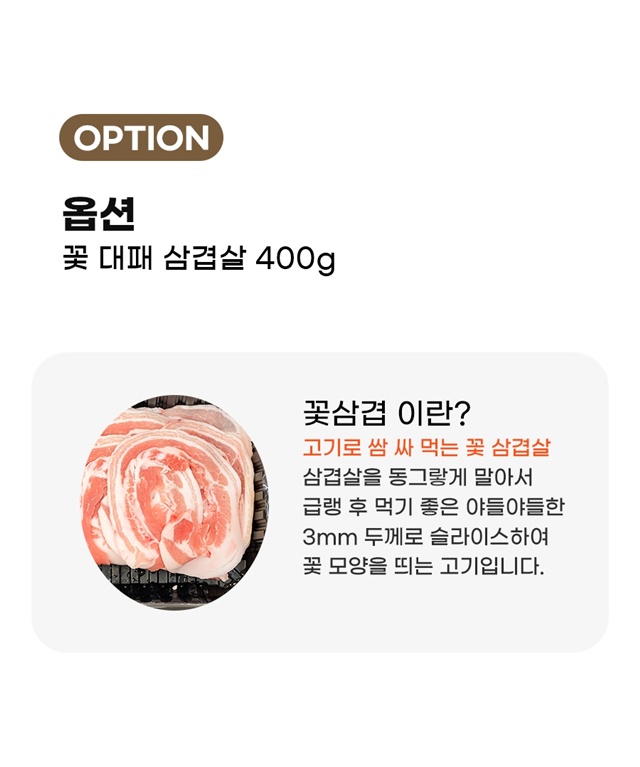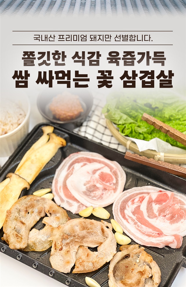 쫄깃한 식감 육즙가득 쌈 싸먹는 꽃 삼겹살