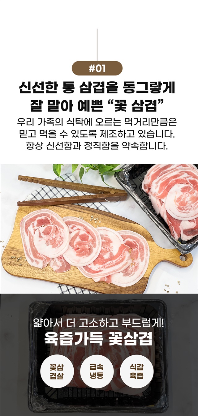 | 1. 품목 또는 명칭 | 국내산 꽃 대패 삼겹살 |
