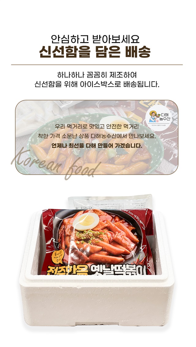 | 1-5. 포장단위별 내용물의 용량(중량), 수량 | 옛날 떡볶이 밀키트 500g (밀떡300g, 소스100g, 미니사각어묵100g) |