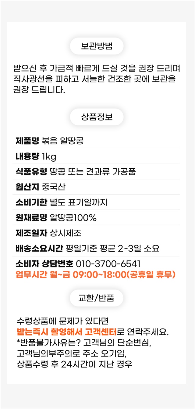 | 1. 품목 또는 명칭 | 볶음 알땅콩 |