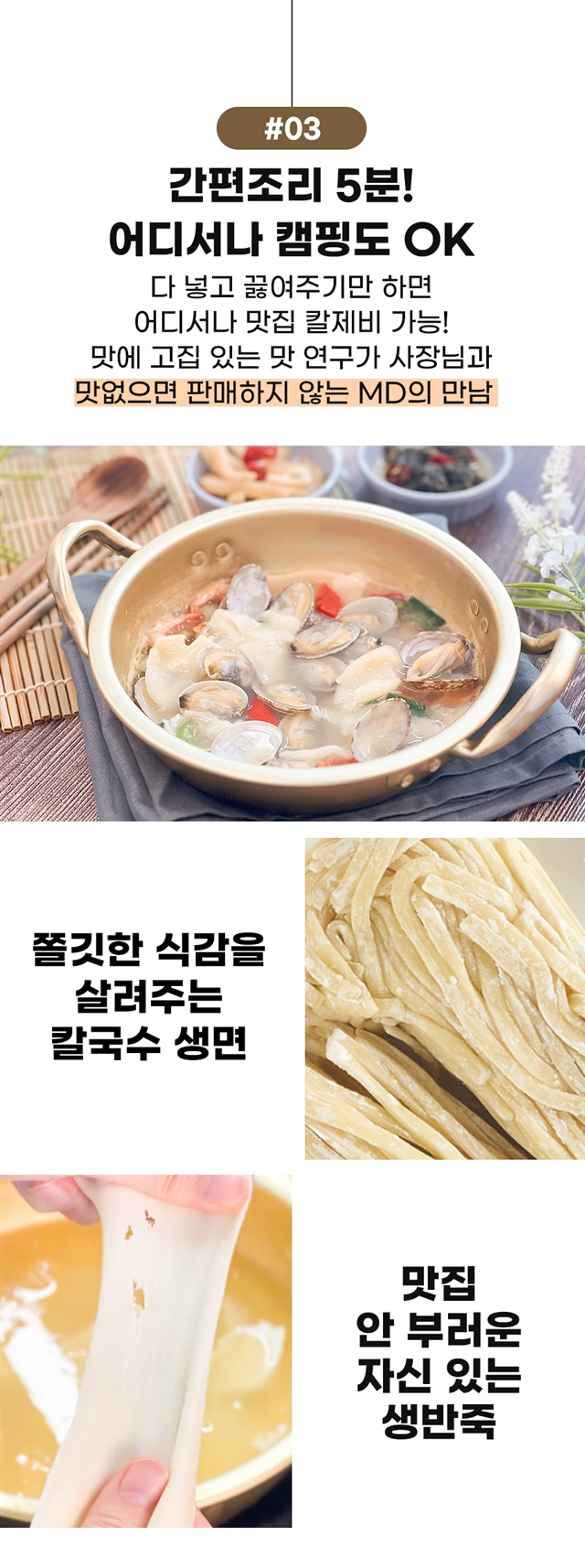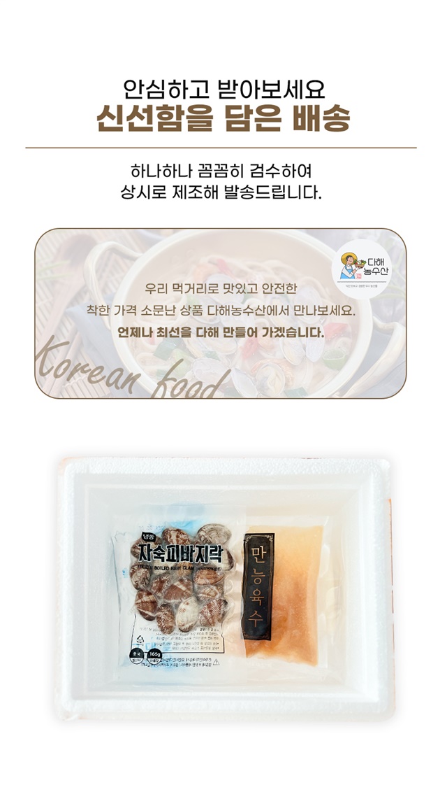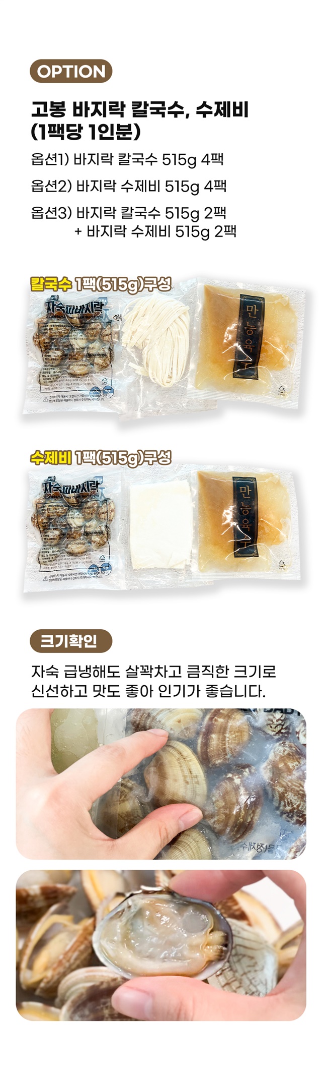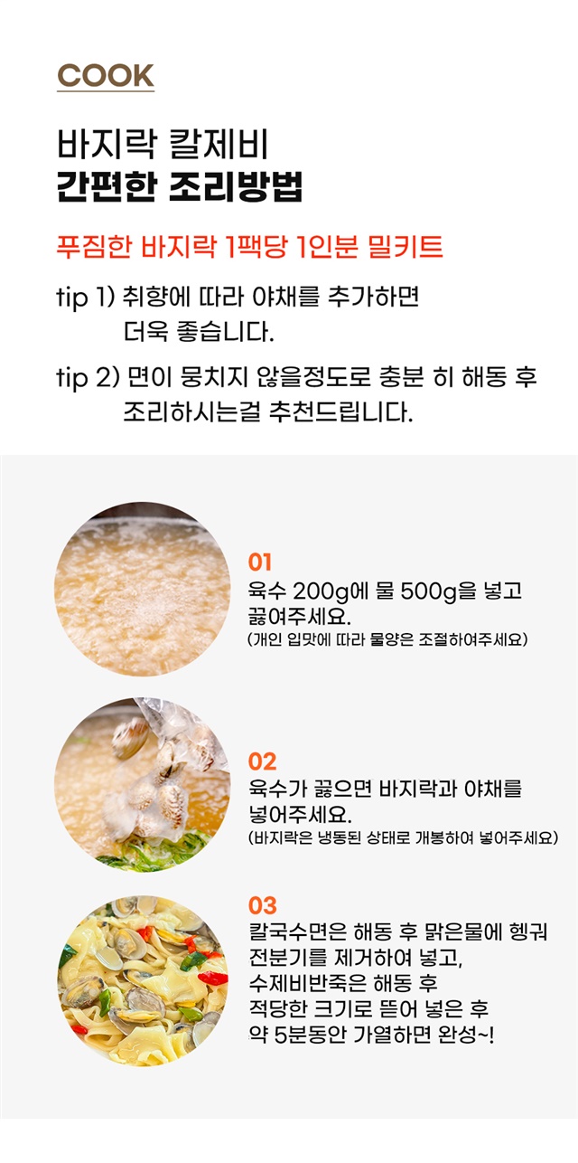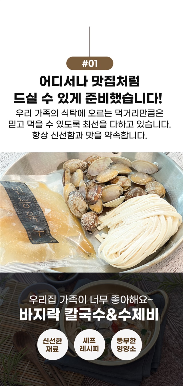 | 1-1. 제품명 | 바지락 가득 칼국수, 수제비 |